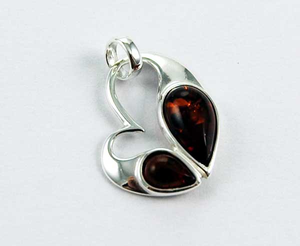 Pendant Amber Silver Heart