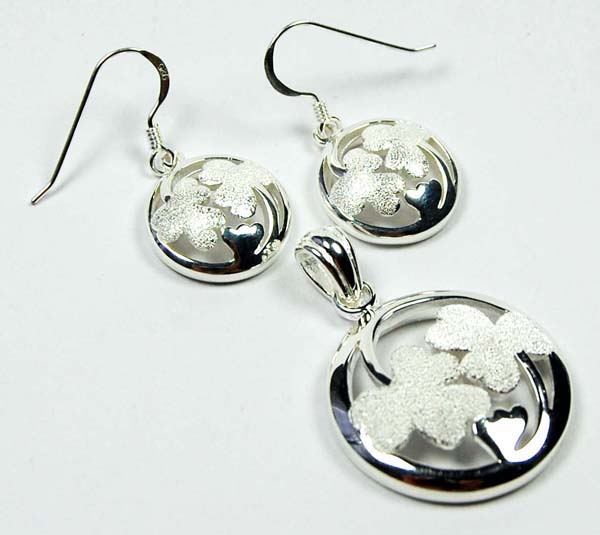 Pendant And Earring Set Clover Leaf In Circle