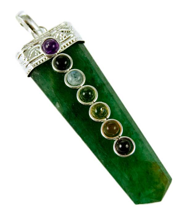 Pendant Metal Aventurine With Chakra Stones Pointed Shape L5.5cm