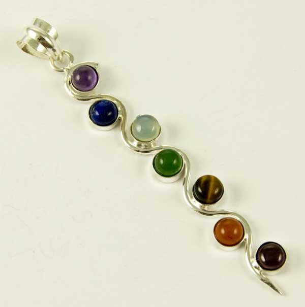 Pendant Metal Chakra Stones Wavy Strip L6.5cm
