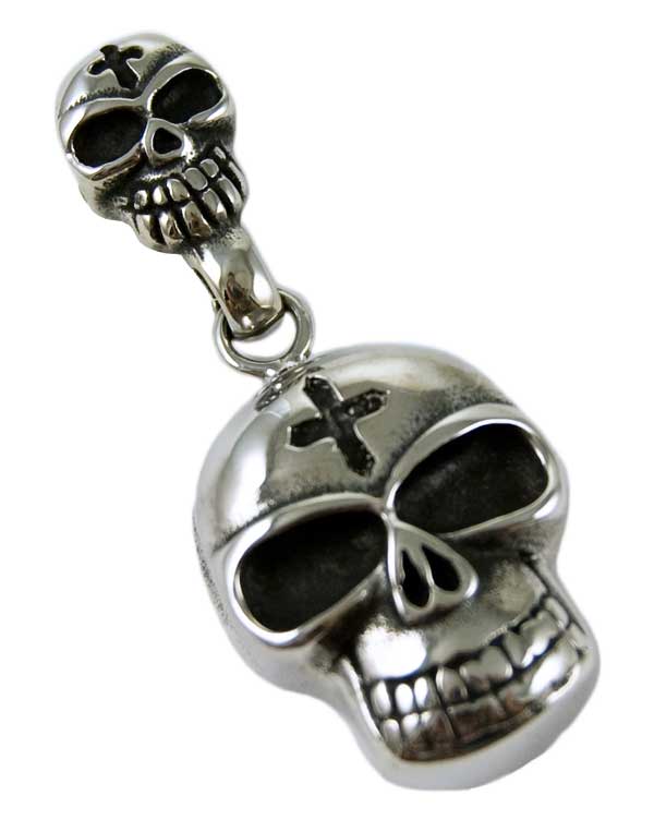 Pendant Stainless Steel Double Skull With Cross On Forehead