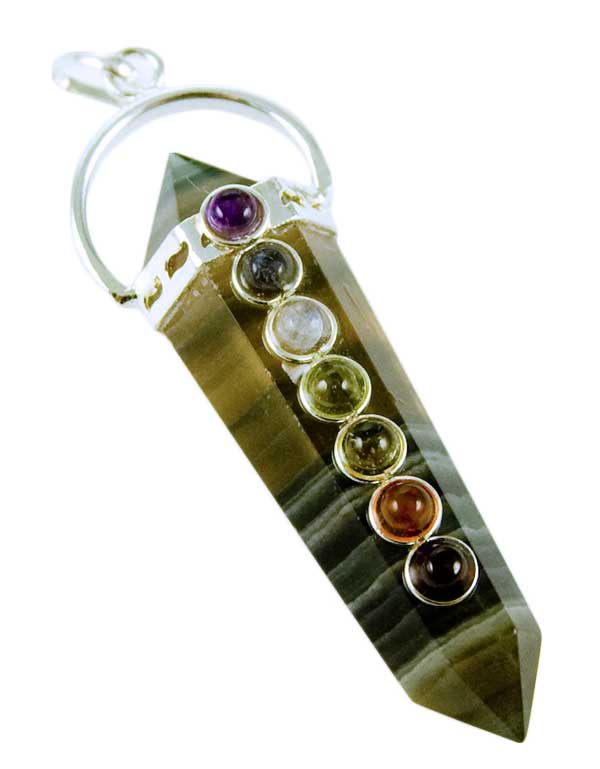 Pendant Fluorite With Chakra Stones Pointed Shape Silver Plated L4.5cm