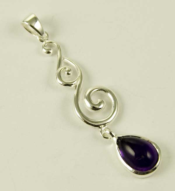 Pendant Silver Swirl Drop With Oval Stone Amethyst 43mm