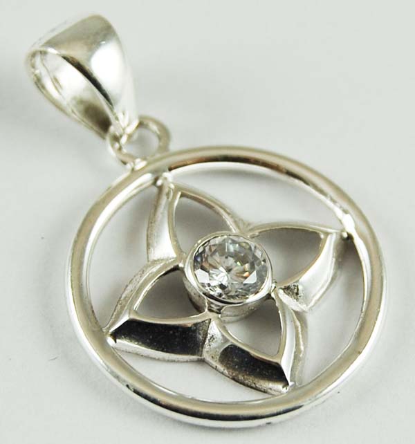 PENDANT SILVER CLEAR QUARTZ CUT FLOWER IN CIRCLE 25MM