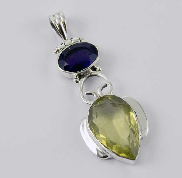 Pendant Silver Oval Citrine And Labrodite Drop Stone L5.7cm