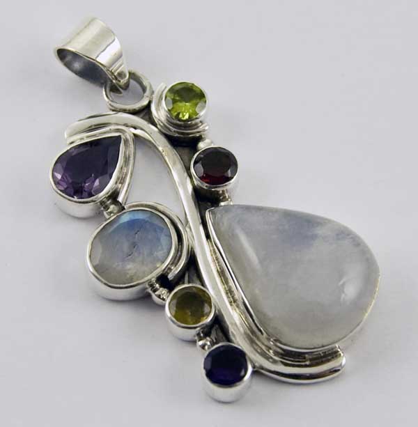 Pendant Silver Tear Drop Moonstone Stone Drop Wiith Mixed Stones L4.5cm