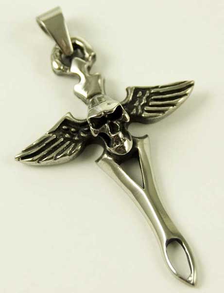 Pendant Stainless Steel Sword Shape Skull With Wings
