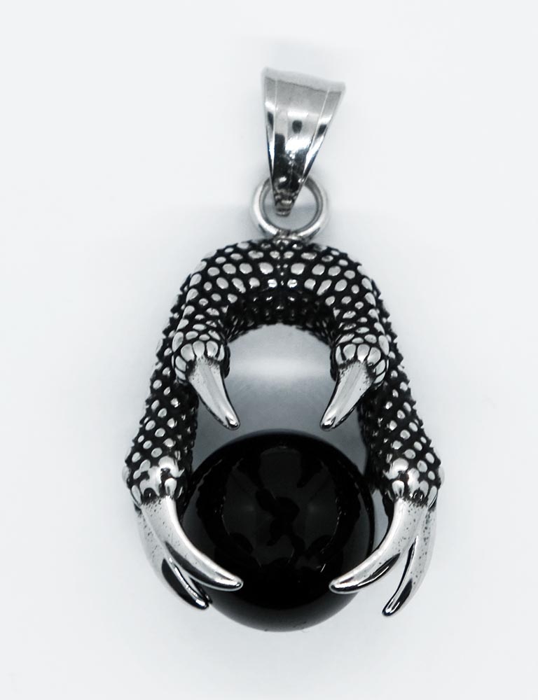 Pendant Stainless Steel Claw Black Ball