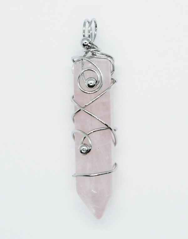 Pendant Wand Wired With Metal Beads Rose Quartz