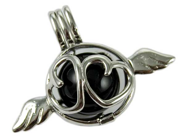 Pendant Wings And Hearts With 16mm Onyx Ball Encased With Silver Plated Material