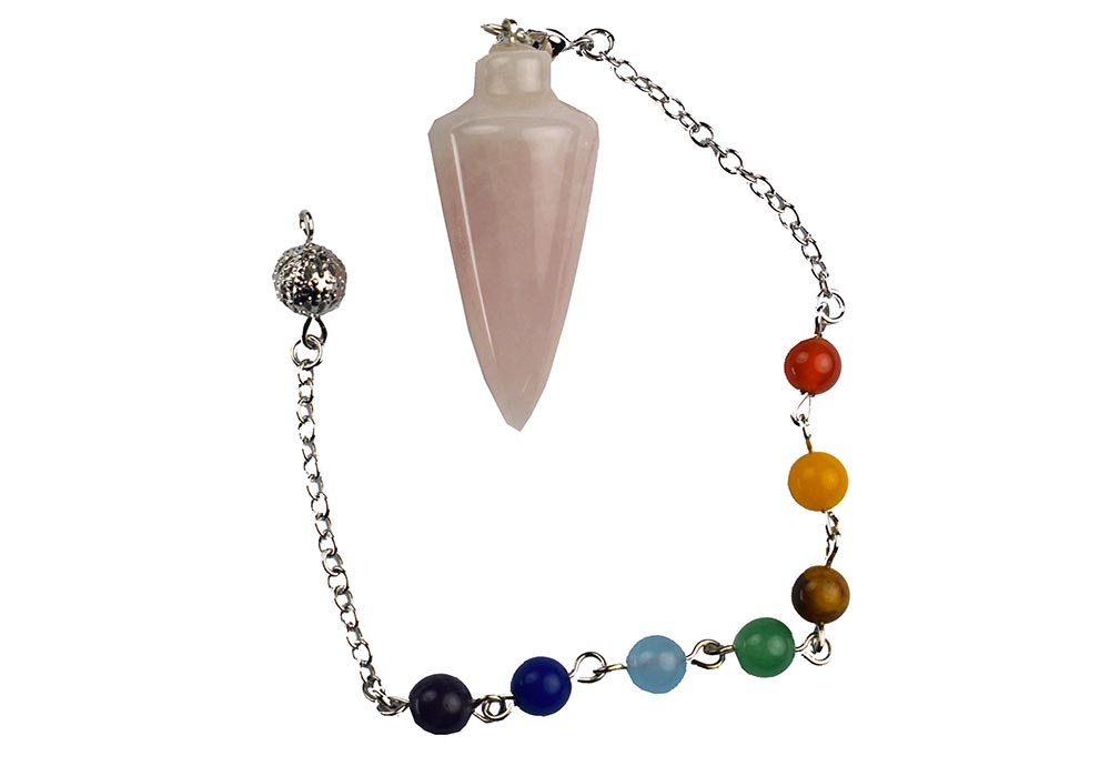 Pendulum Rose Quartz Stone Cone With Chakra Chain