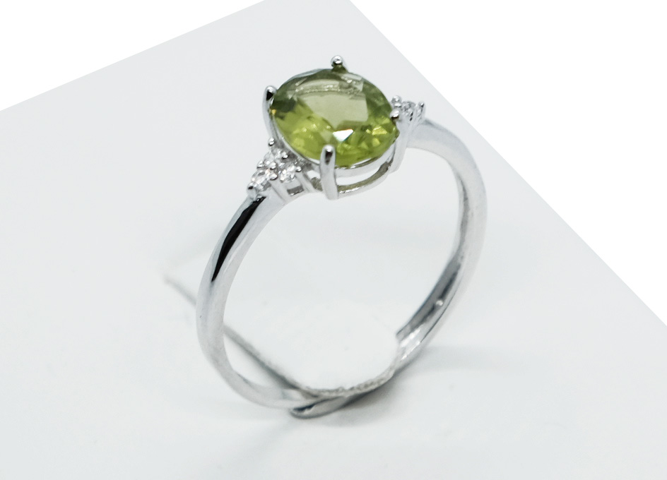 Silver Ring Peridot, Adjustable Size (N-R)