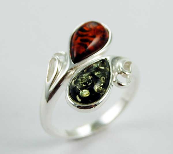 Ring Amber Double Tear Drop Multi Colour