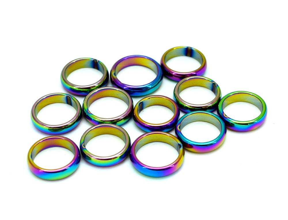 Ring Hematite Rainbow 5 Assorted Sizes In Bag 12pcs