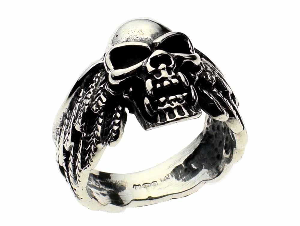 Sterling Silver 925 Hallmarked Ring Skull With Feathery Wings