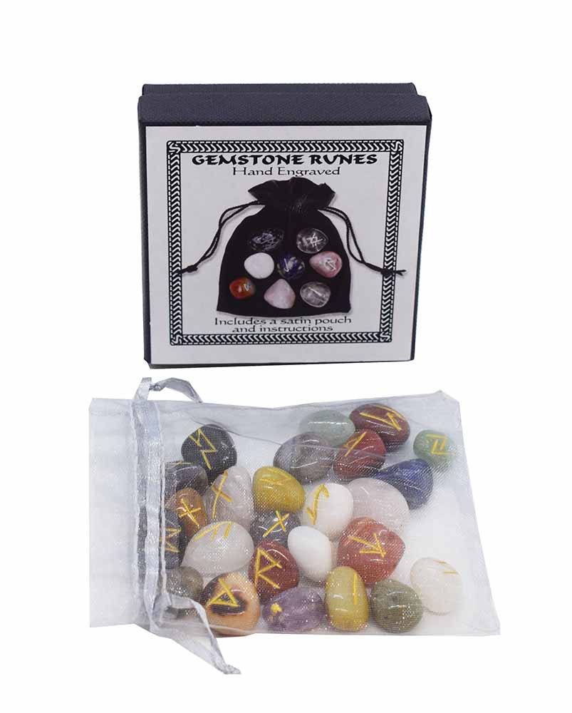 Rune Set 25 Mixed Gemstones In A Pouch Boxed