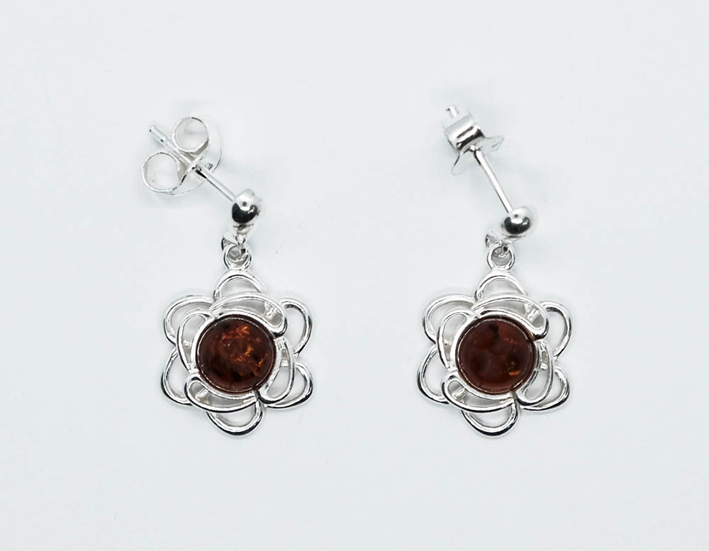 Sterling Silver 925 Hallmarked Amber Earring Flower 2.6g