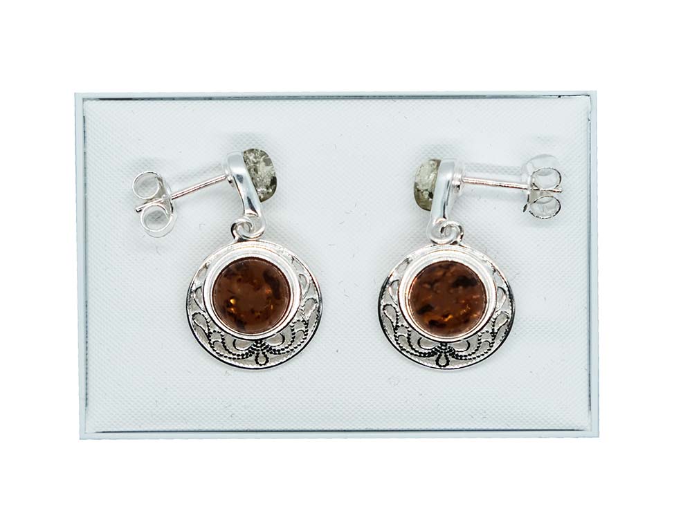 Sterling Silver 925 Hallmarked Amber Earring Round Filigree 4g