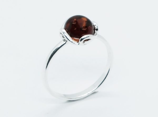 Round Amber Silver Ring