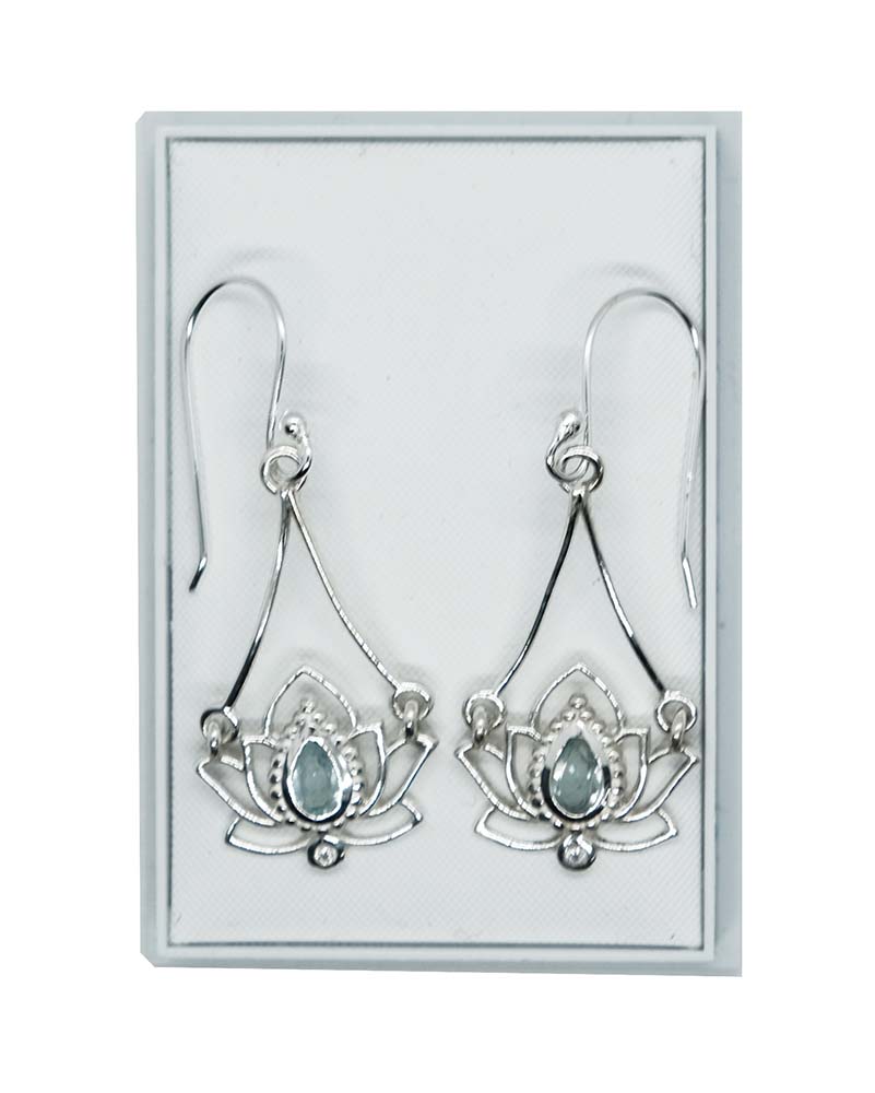 Sterling Silver 925 Hallmarked Earing Lotus Cut Blue Topaz 25mm