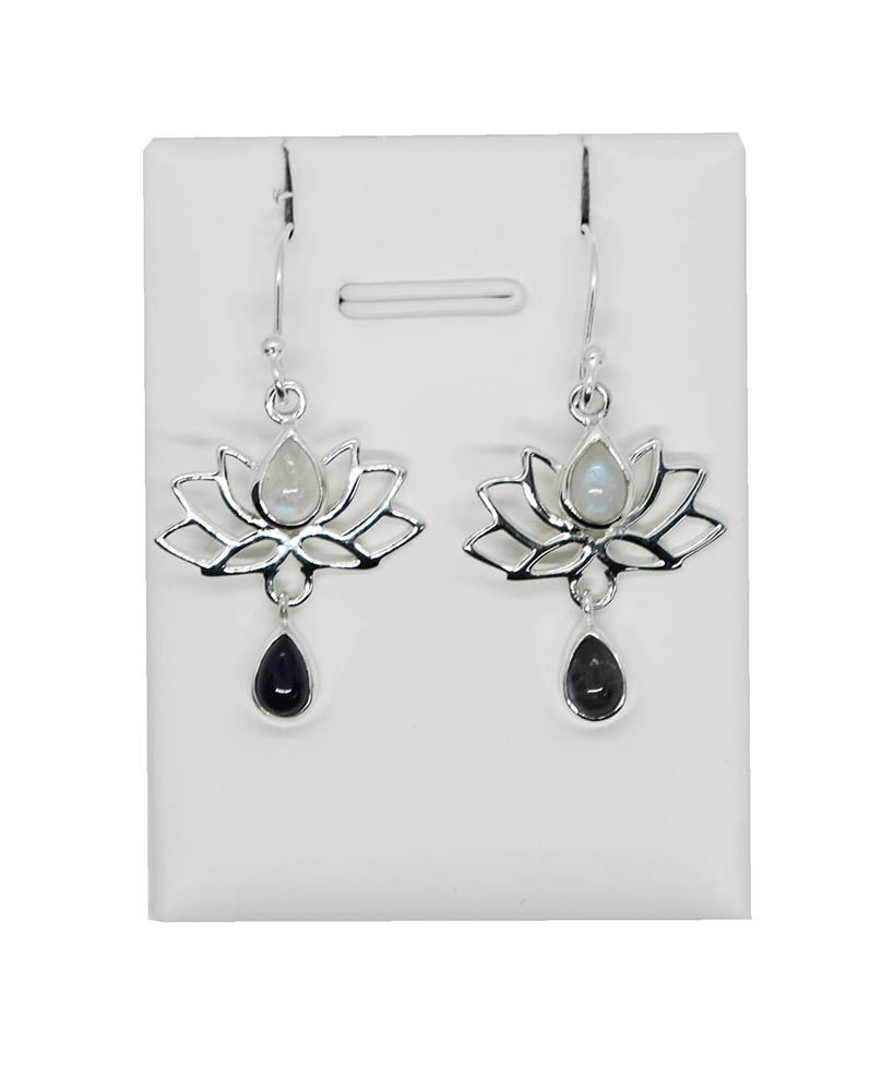 Sterling Silver 925 Hallmarked Earing Lotus Double Rainbow and Amethyst