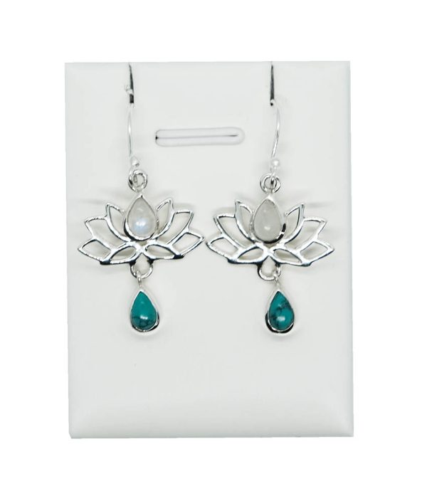Sterling Silver 925 Hallmarked Earing Lotus Double Rainbow and Turquoise