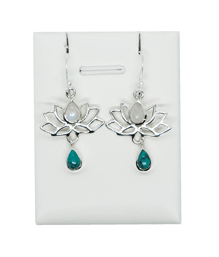 Sterling Silver 925 Hallmarked Earing Lotus Double Rainbow and Turquoise