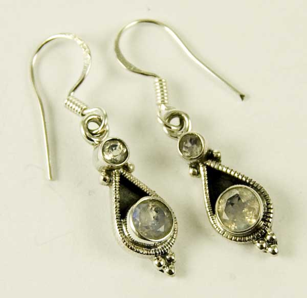 Earring Fancy Tear Drop With Labradorite Circle Cut Stones Length From Top Hook 3.5cm 925 Sterling Silver