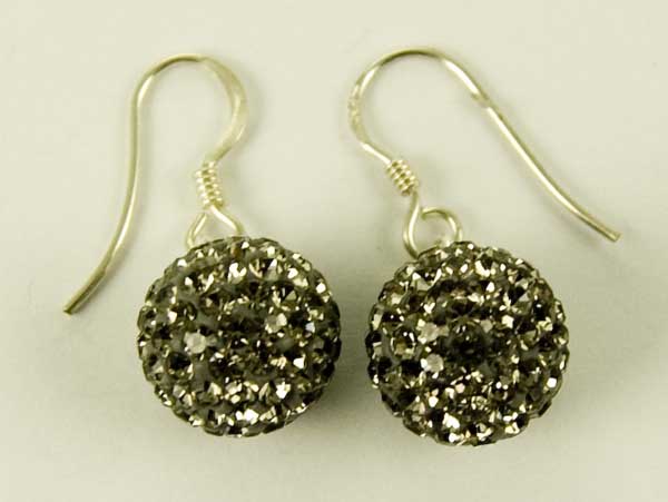 Earring Cluster Drop Black Diamond 12mm 925 Sterling Silver