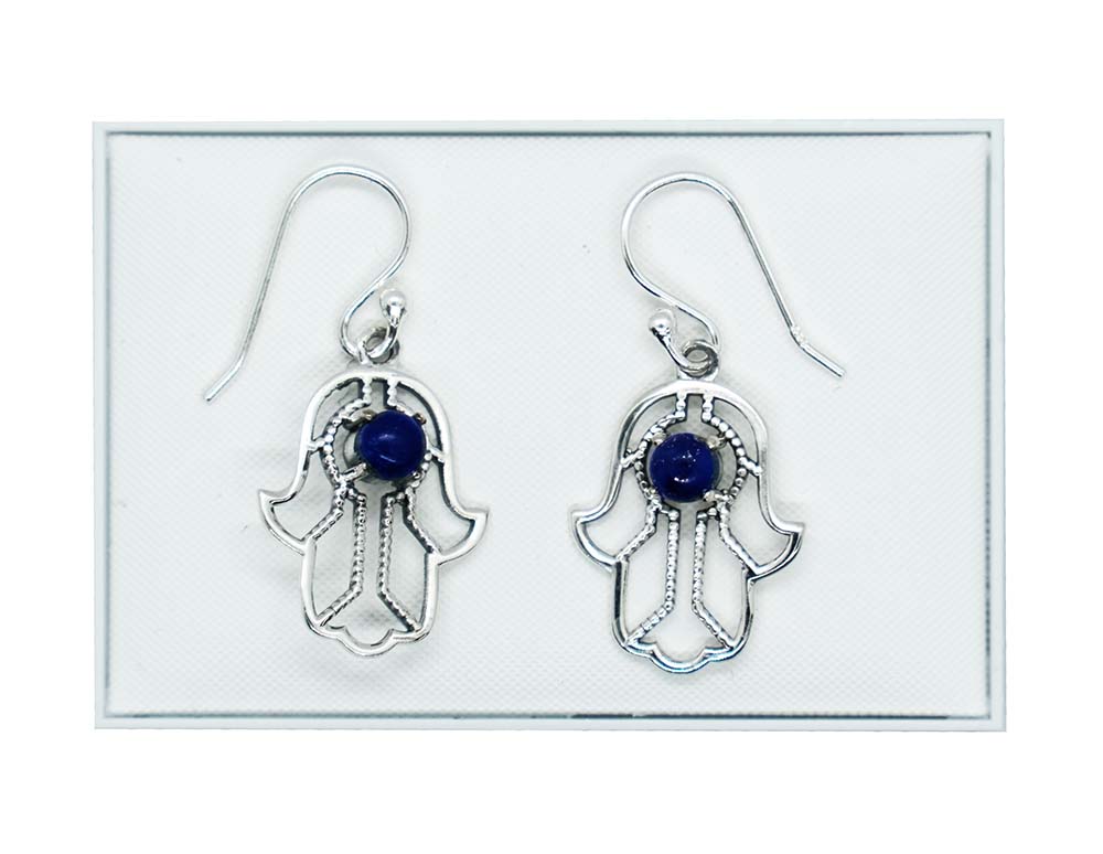 Silver Earring Fattima Lapis 925 Sterling Silver 925 Hallmarked Approx. 32 x 14.5mm