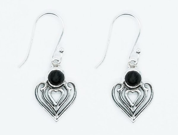 Sterling Silver 925 Hallmarked Earring Heart Black Onyx Round Cab 4x4mm