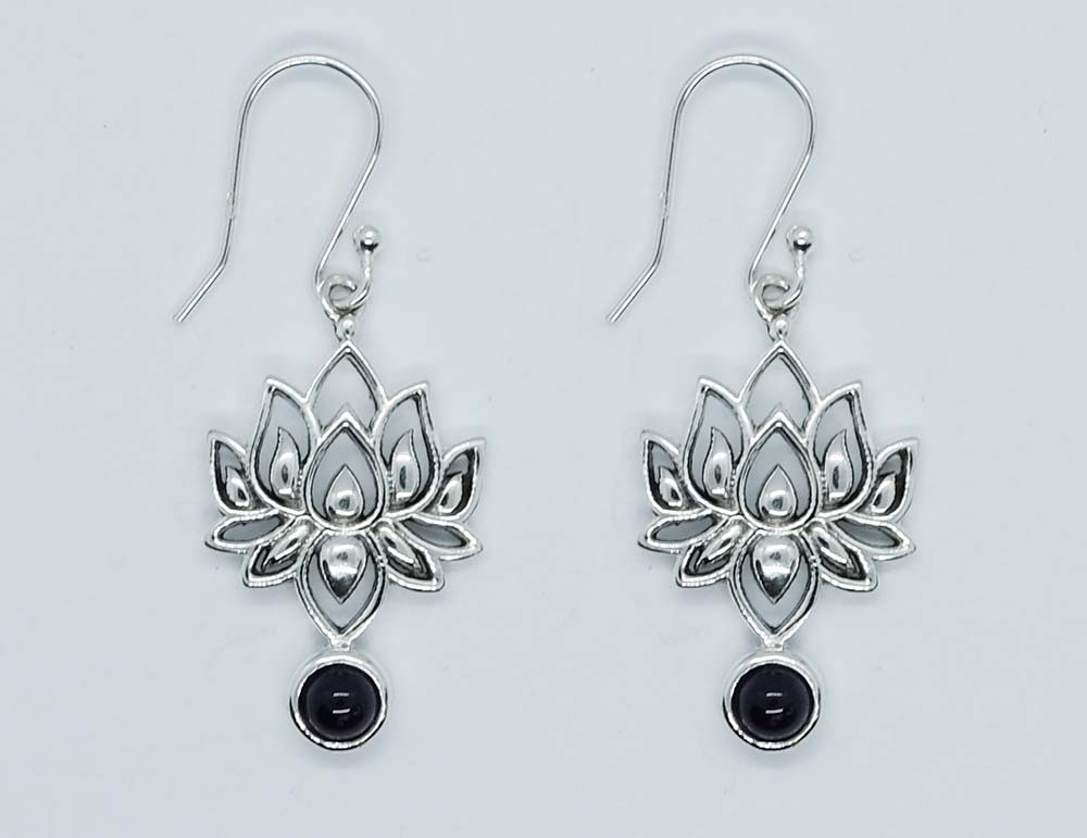 Sterling Silver 925 Hallmarked Earring Amethyst Lotus Cabochon 4x4mm