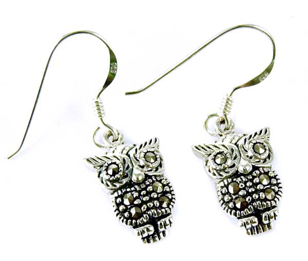 Earring Owl With Marcasite Stones Size From The Top L2.5cm 925 Sterling Silver