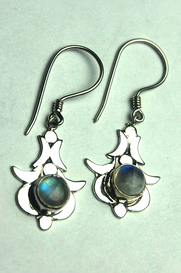 Earring Multiple Moons With Moonstone Cab Stone L3.5cm 925 Sterling Silver