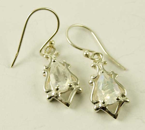 Earring Moonstone Tear Drop Cut Stone With Fancy Border Design Size From Hook L2.5cm 925 Sterling Silver