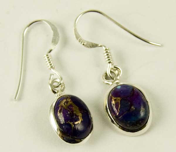 Earring Oval Plain Purple Mojave Stone Length From Top Of Hook 2.5cm 925 Sterling Silver