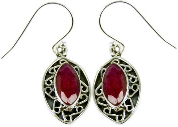Earring Ruby Cut Oval Stone Set On Flat Fancy Base L3.5cm From The Top Of The Hook 925 Sterling Silver