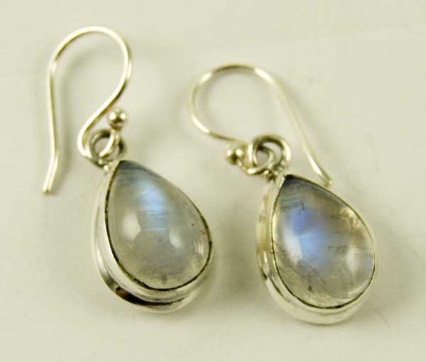 Earring Tear Drop Moonstone Cabochon Plain Stone Size From Top Of Hook L2.5cm 925 Sterling Silver