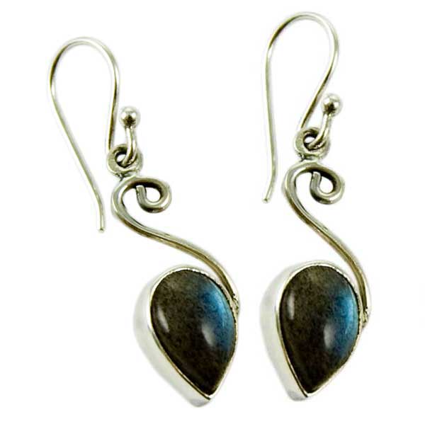 Earring Tear Drop Labradorite Cabochon Stone Fancy Swirl Drop Size From Top Of Hook L3.2cm 925 Sterling Silver