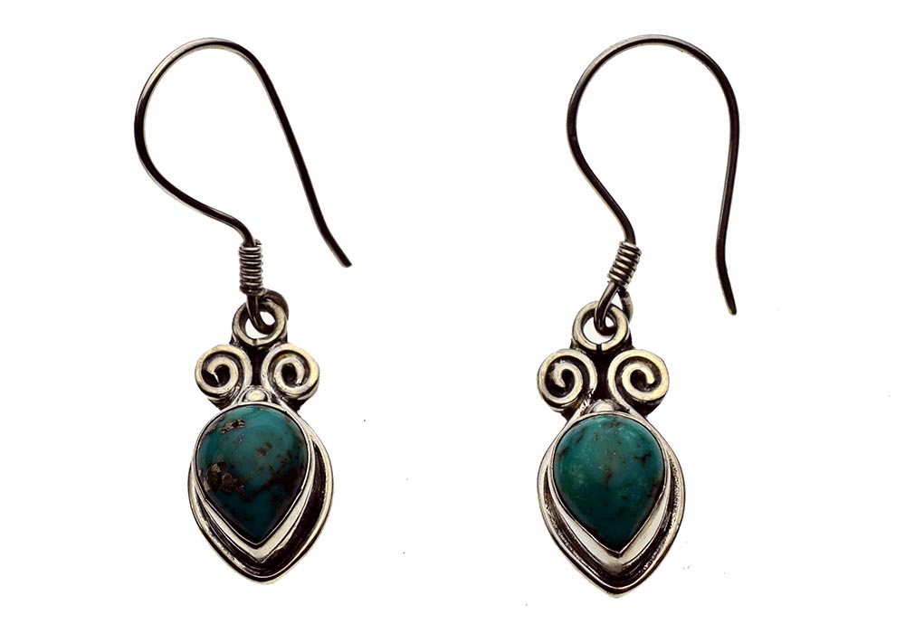 Earring Fancy Tear Drop With Turquoise Cab Stone L3.5cm 925 Sterling Silver