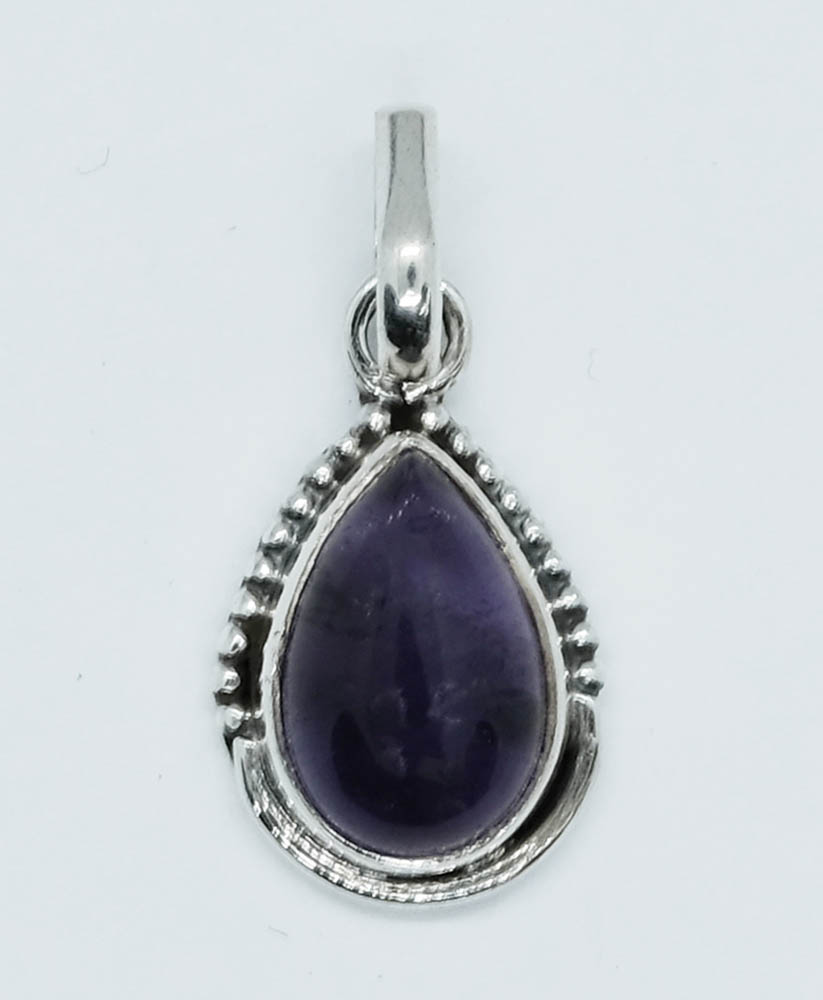 Sterling Silver 925 Hallmarked Pendant Amethyst Pear Shape Cab 8x12 mm