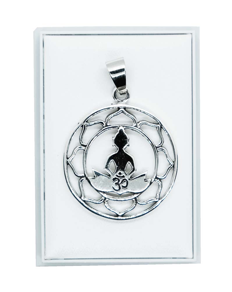 Silver Pendant Budha Sitting in Lotus 3.7cm 925 Sterling Silver 925 Hallmarked