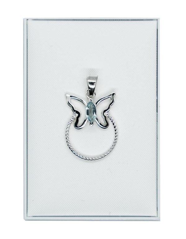 Silver Pendant Butterfly Marquise Blue Topaz 925 Sterling Silver 925 Hallmarked Approx. 23 x 14mm
