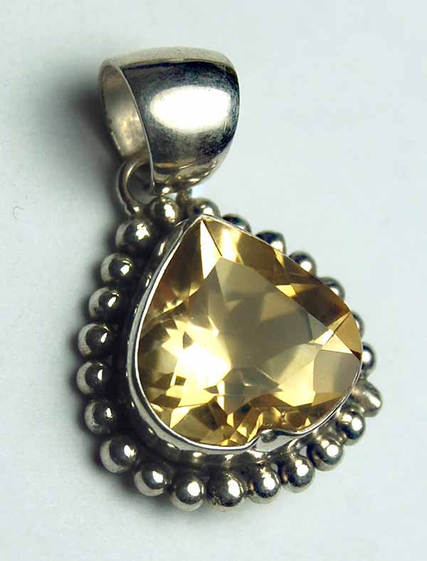 Pendant Tear Drop Citrine Cut Stone With Bobbled Edge L2.5cm 925 Sterling Silver