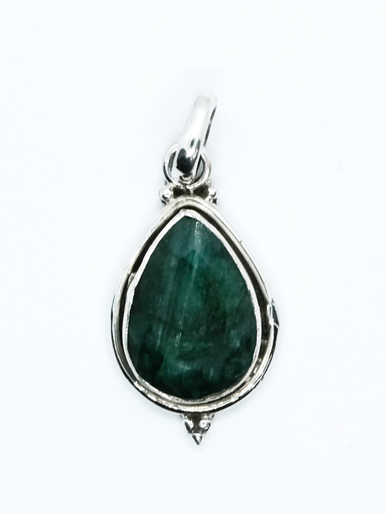 Sterling Silver 925 Hallmarked Pendant Pear Shape Emerald 2cm
