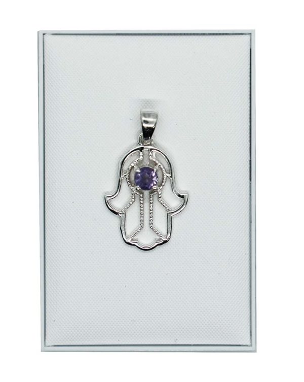 Silver Pendant Fattima Hand Amethyst 925 Sterling Silver 925 Hallmarked Approx. 24 x 14.5mm