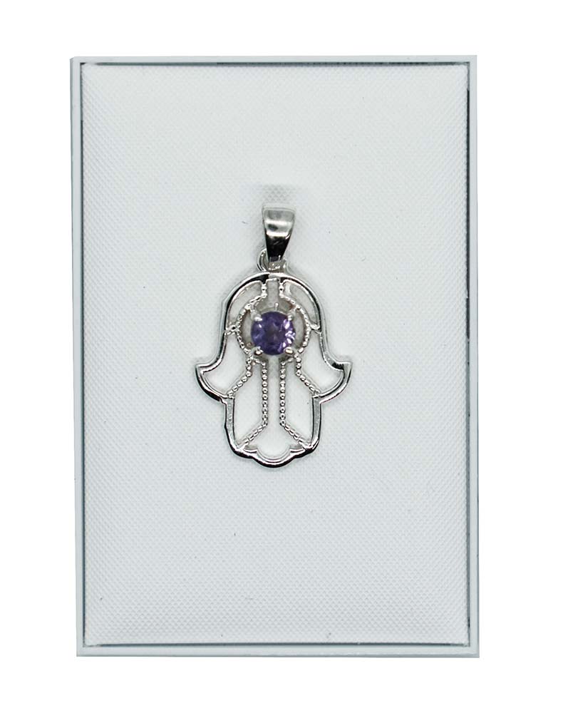 Silver Pendant Fattima Hand Amethyst 925 Sterling Silver 925 Hallmarked Approx. 24 x 14.5mm