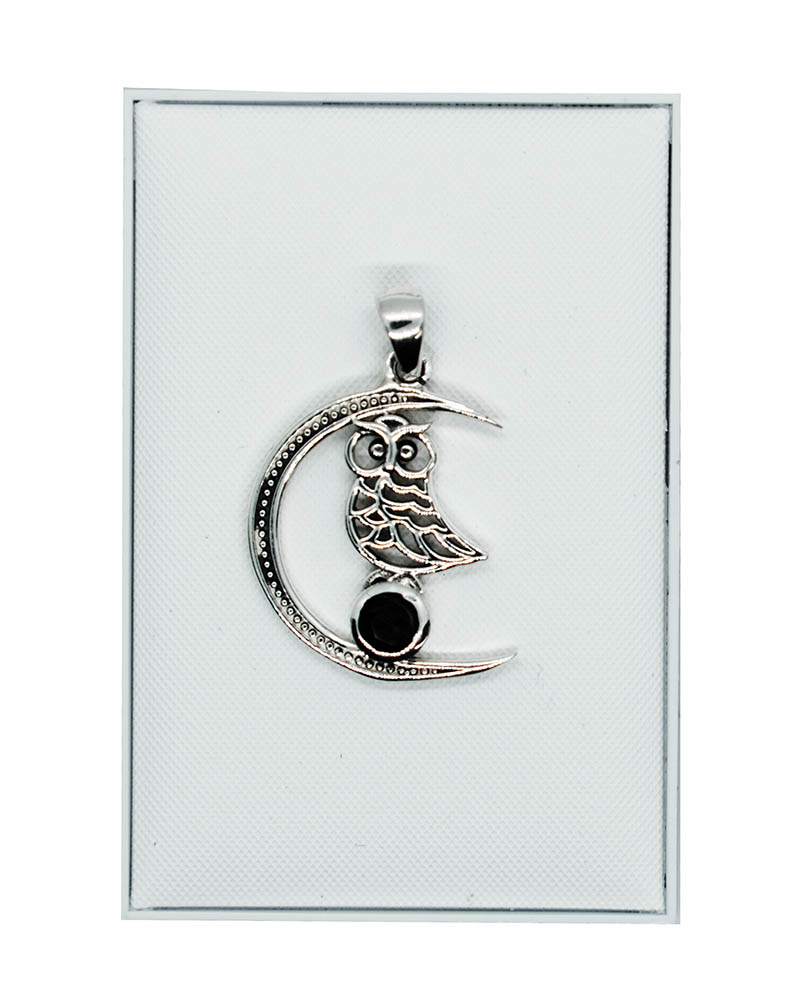 Silver Pendant Moon Owl Onyx 925 Sterling Silver 925 Hallmarked Approx. 26 x 17mm