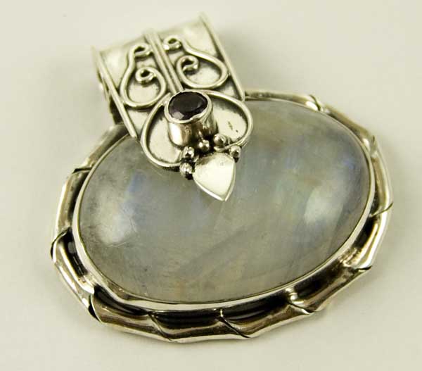 Pendant Oval Amethyst And Moonstone Cabochon Stone With Fancy Top Size From Top L3.5XW3.5cm 925 Sterling Silver