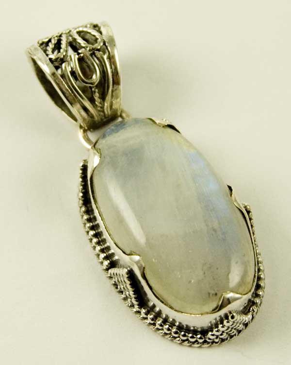 Pendant Oval Moonstone Stone Crown Style With Floral Top Size From Top L4cm 925 Sterling Silver